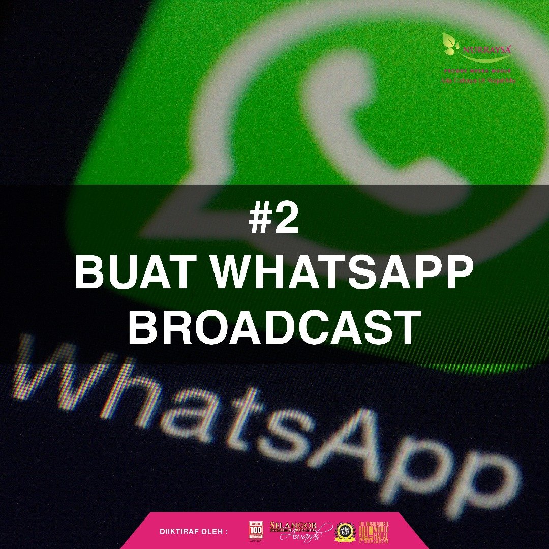 Pastikan anda save semua no customer dan prospek ya baru lah boleh buat WhatsApp Broadcast.. Antara bahan yang anda boleh broadcast adalah dengan memberi ucap salam, sharing testimoni, bagi tips dan promosi terkini ya!