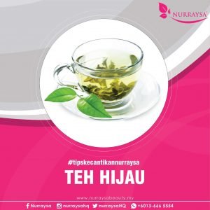 Minum teh hijau sekurang kurangnya satu atau dua gelas sehari. Ia dapat membuatkan kulit bebas dari jerawat kerana ia mengandungi antioksidan yang sangat bagus untuk tubuh badan seterusnya dapat membersih usus kita daripada toksin.
