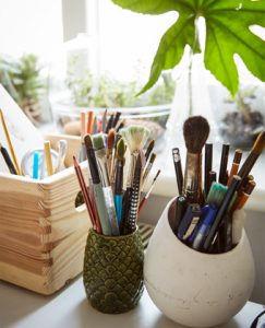 - Barang-barang yang anda perlukan semasa kerja pelulah disusun di satu tempat supaya tidak nampak bersepah. Letakkan barang-barang yang anda selalu guna dan saling berkait di satu tempat yang sama supaya ia dapat memudahkan anda untuk mencari apabila ingin menggunakannya. Anda juga boleh gunakan barangan terpakai dan hiaskannya untuk dijadikan tempat letak barangan anda. Mudah dan jimat.