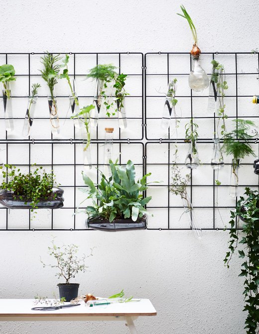 Pasangkan beberapa kabel wayar di dinding, gantungkan beberapa bekas menanam botol soda plastik dengan wayar, tiub kaca dan pasu kecil. Ianya sesuai untuk mentol lampu dan keratan – keratan batang.