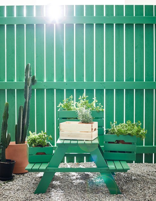 Cat kotak kayu dan isinya dengan tumbuhan berpasu, kemudian gunakan kreativiti pada zon berkebun