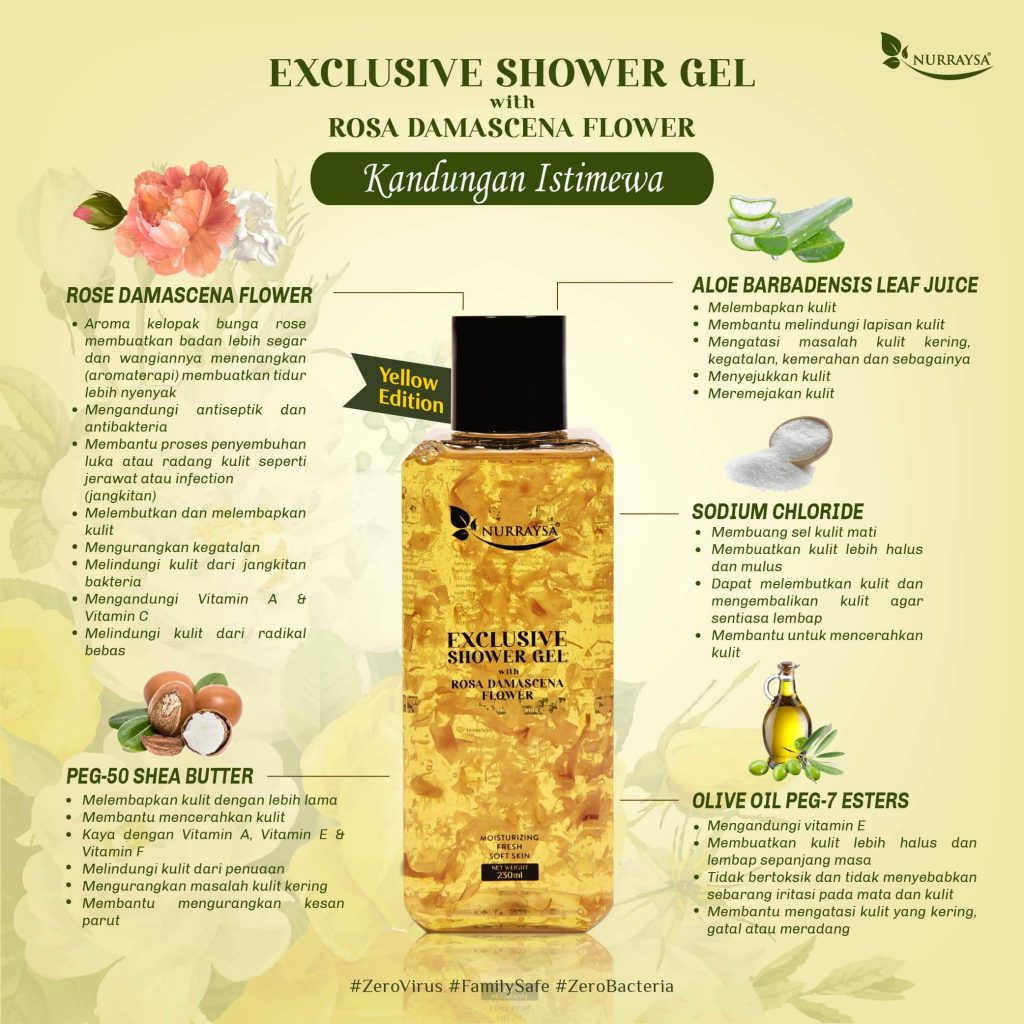 Order Exclusive Shower Gel with Rosa Damascena Flower dengan pengedar Nurraysa terdekat anda, atau contact HQ kami.