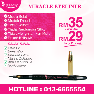 Siapa yang belum ada MIRACLE EYELINER Nurraysa ni ? Rugi tau kalau tak cuba Miracle Eyeliner ni. Banyak sangat kelebihannya. Nak tahu apa ? Jom baca di bawah ni ?