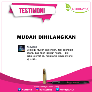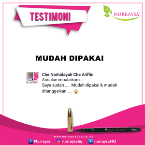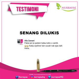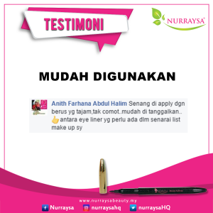 Mudah sangat nak gunakannya. Yang mana baru nak try & newbie dalam penggunaan Eyeliner ni sangat sesuai kalau korang try MIRACLE EYELINER Nurraysa ni sebabnya ianya sangatlah mudah digunakan. Reka bentuk yang tirus dihujungnya lagi memudahkan kita untuk gunakannya.