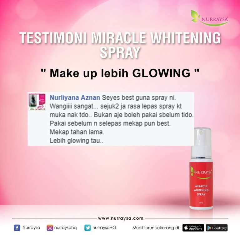 Kami faham perasaan anda dan semestinya anda mahu kulit yang flawless dan selembut kulit bayi. Dan Insha’Allah kami akan bantu anda melalui Miracle Whitening Spray supaya kulit wajah anda kembali sihat dan bersinar !