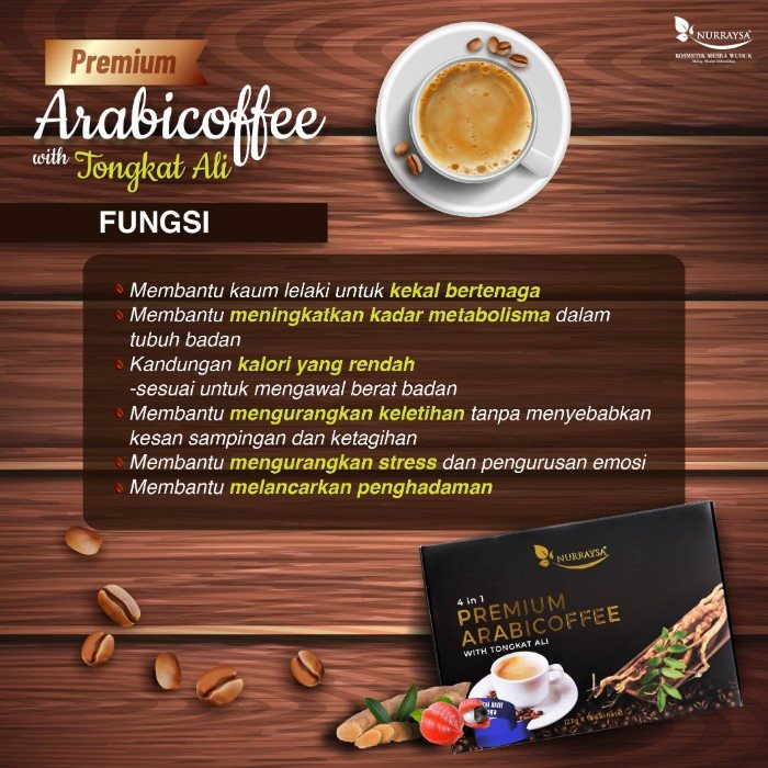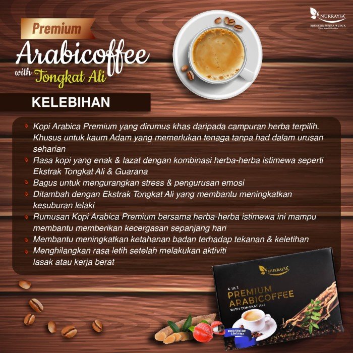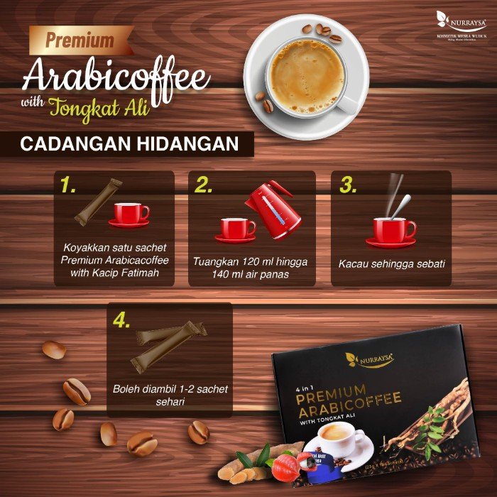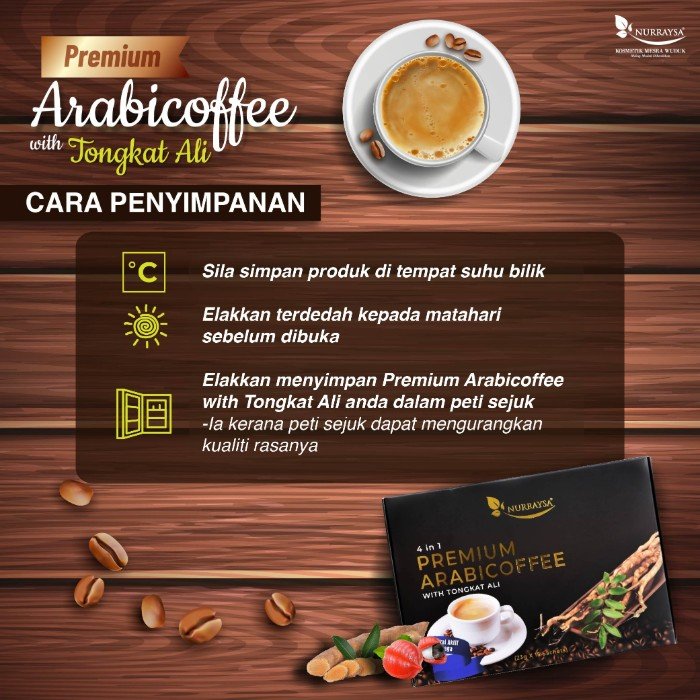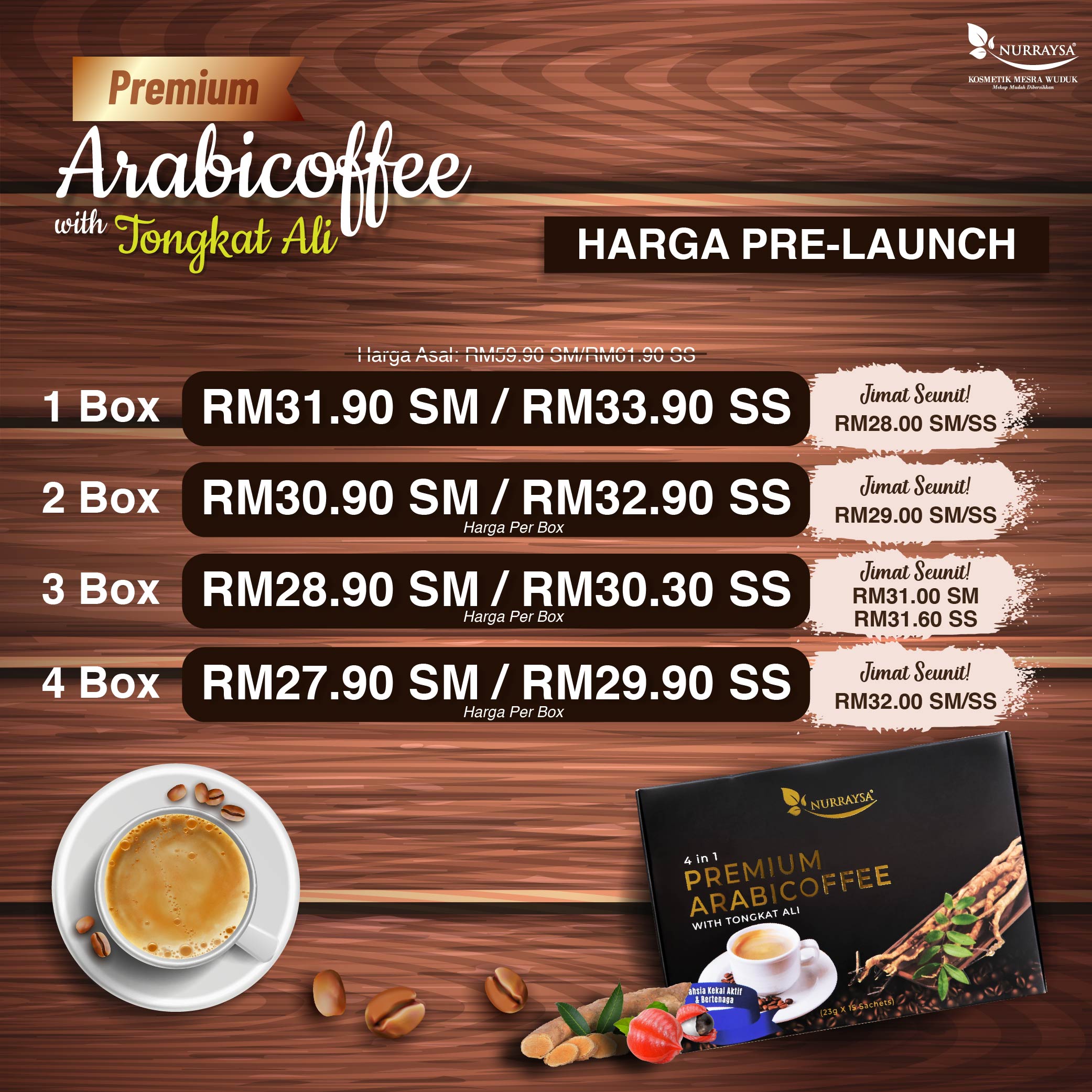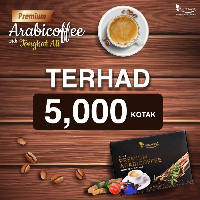 Pre Order Premium ArabiCoffee with Tongkat Ali dengan pengedar Nurraysa terdekat anda, atau contact HQ kami.