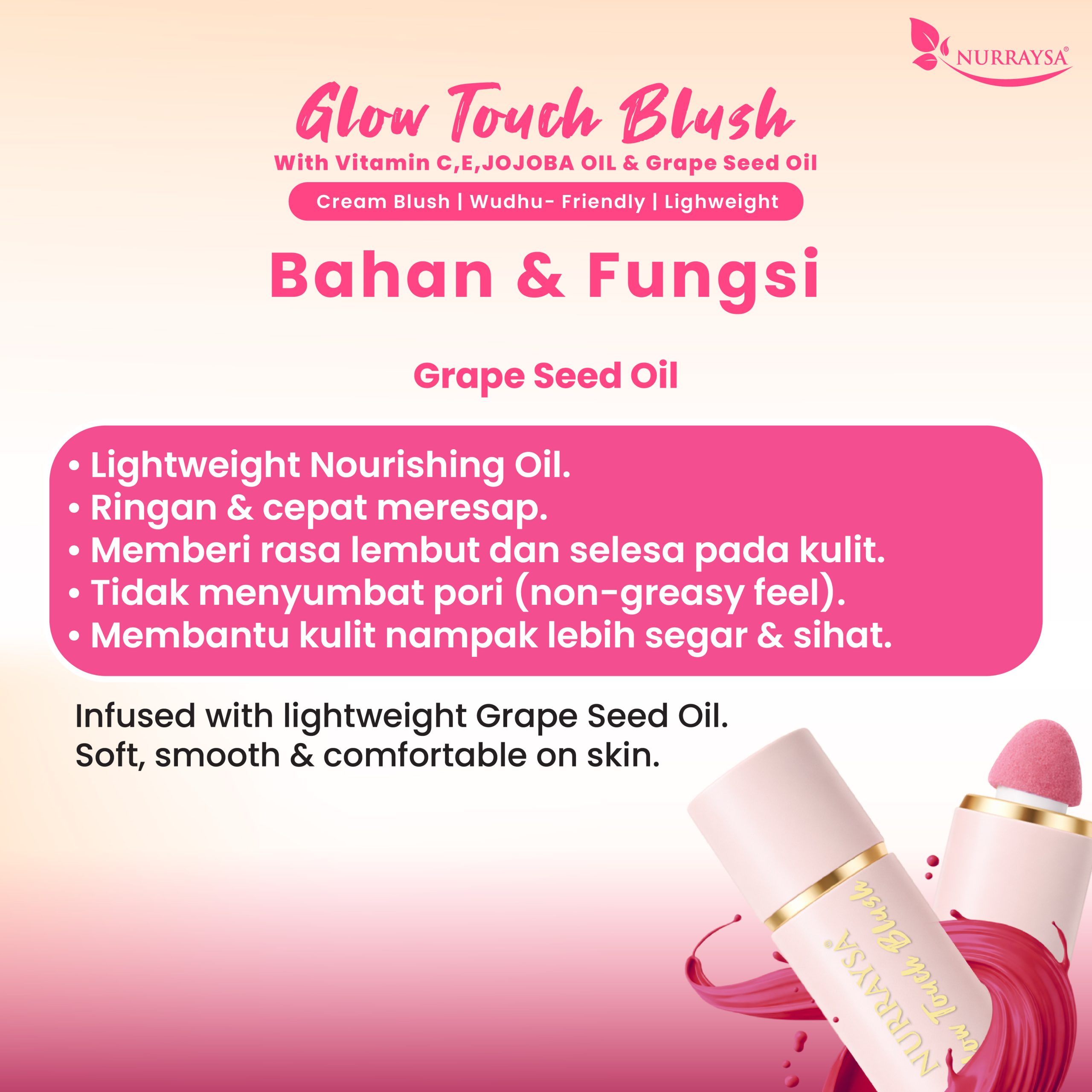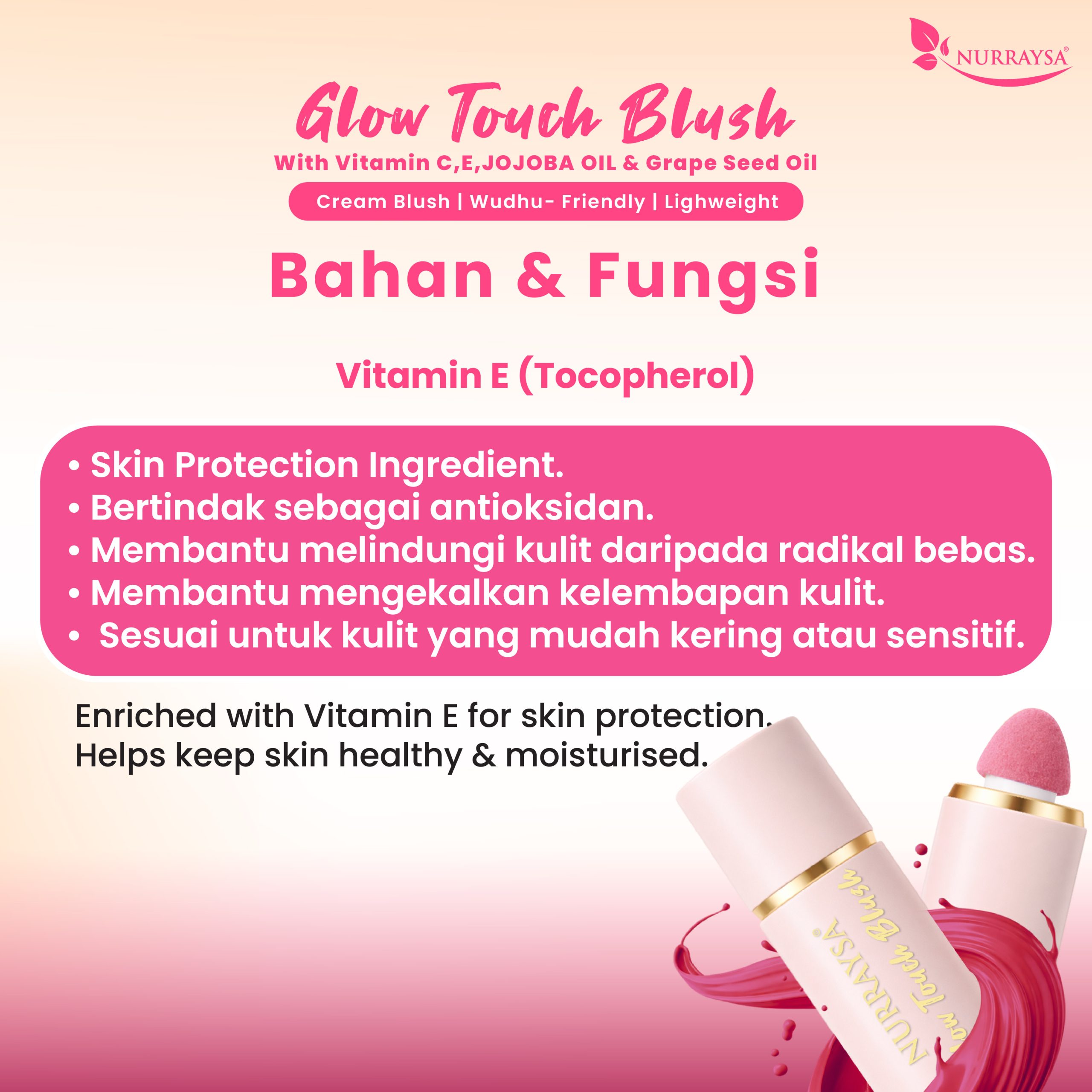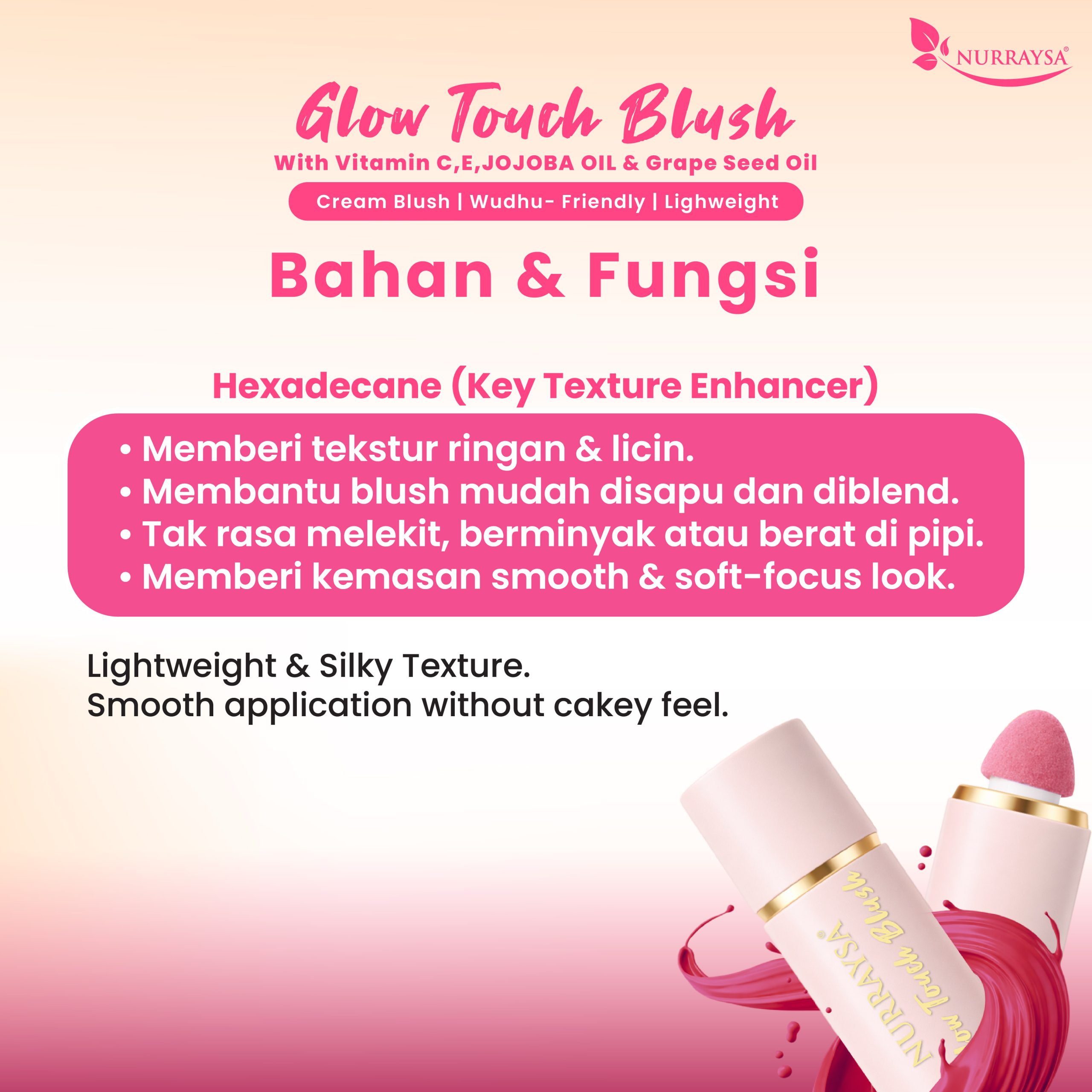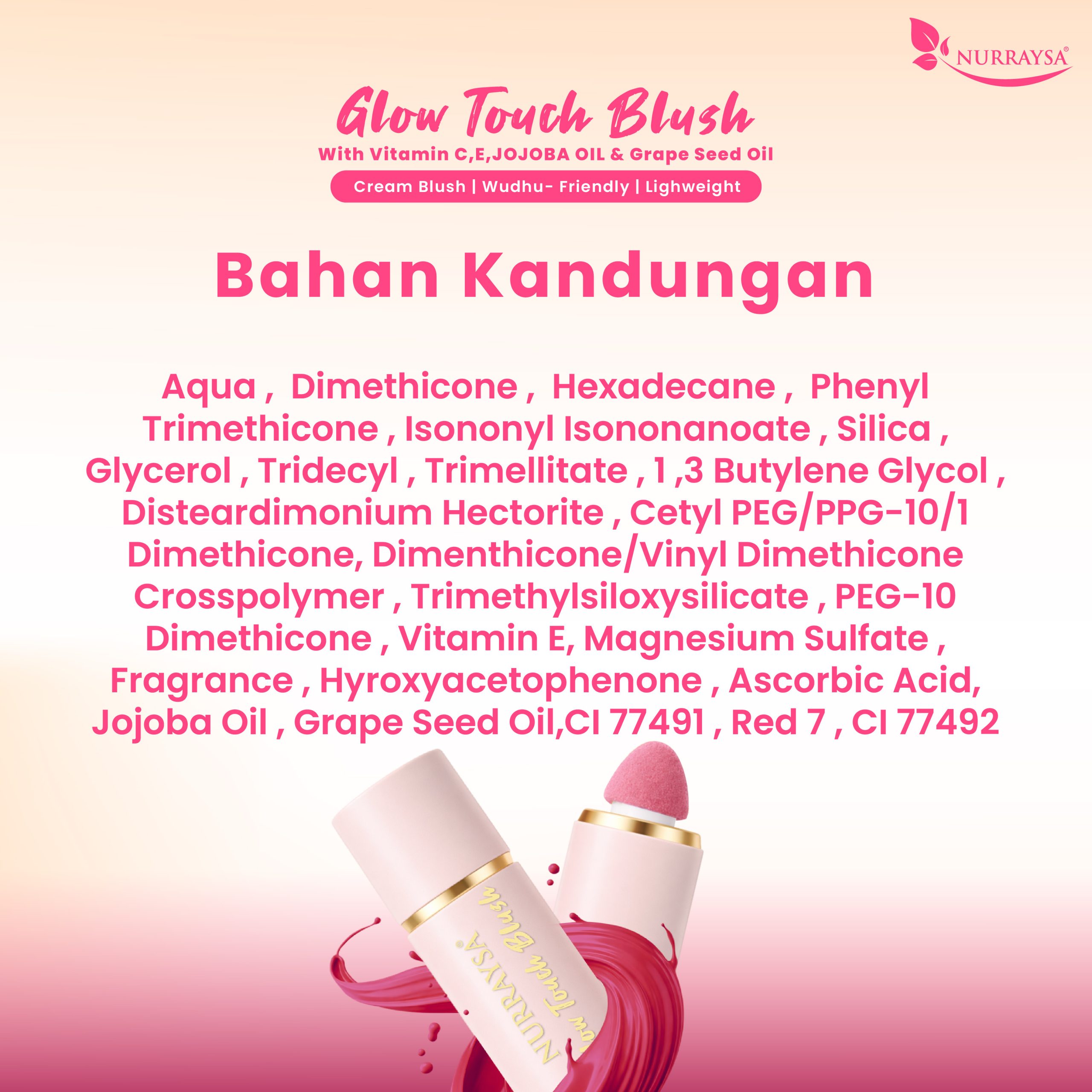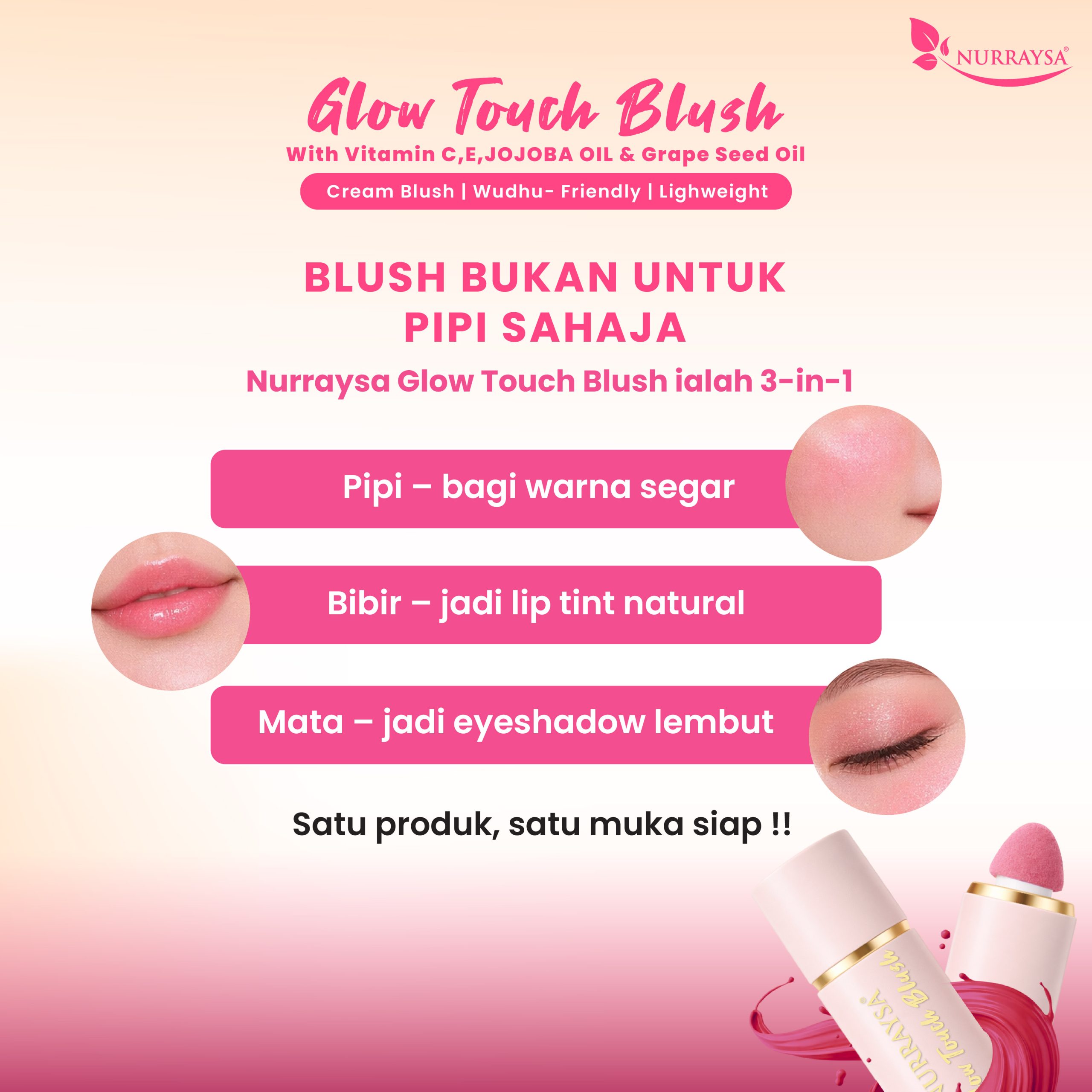 - Glow Touch Blush mempunyai Packaging Eksklusif & Trendy – Aplikasi mudah, hanya dap di pipi tanpa comot.