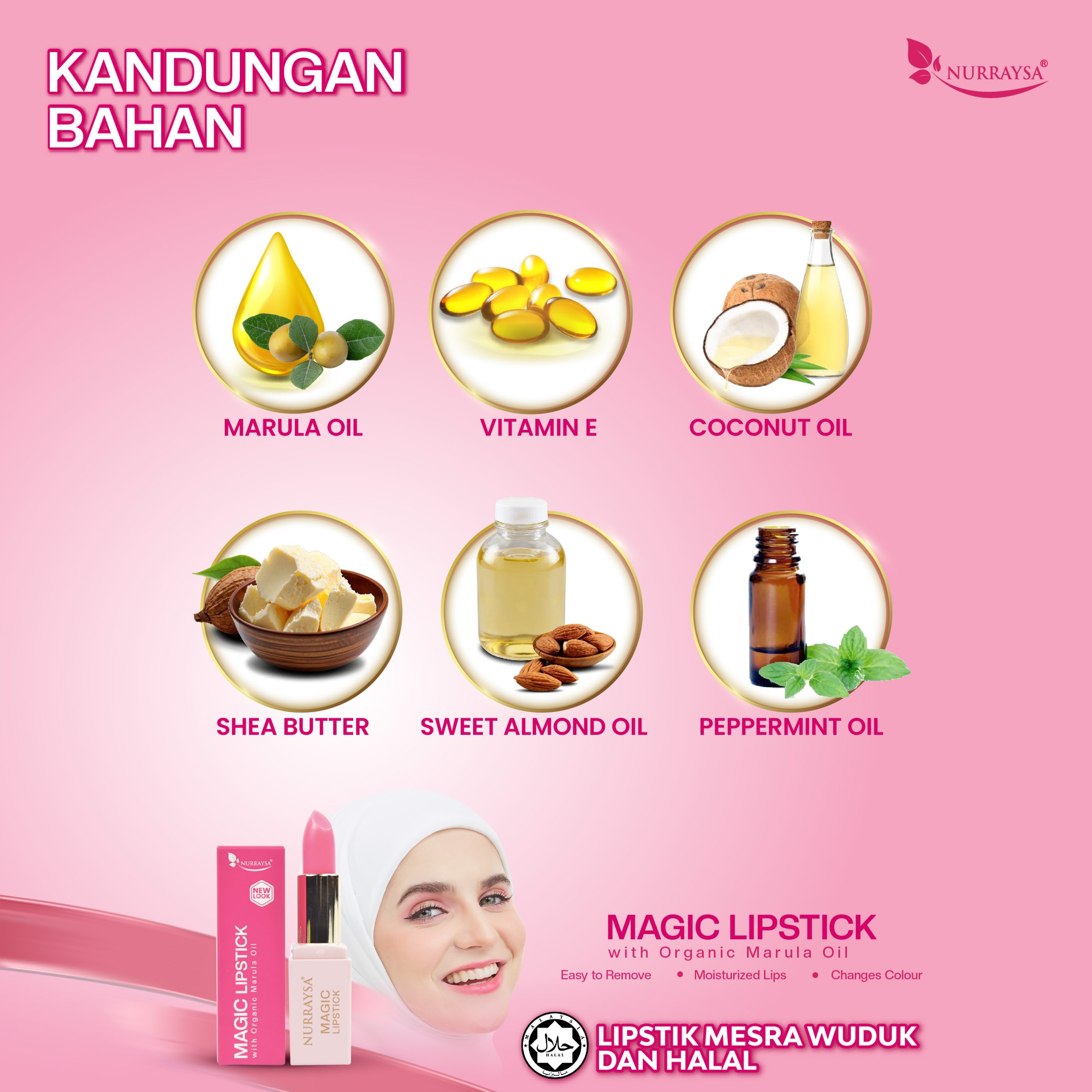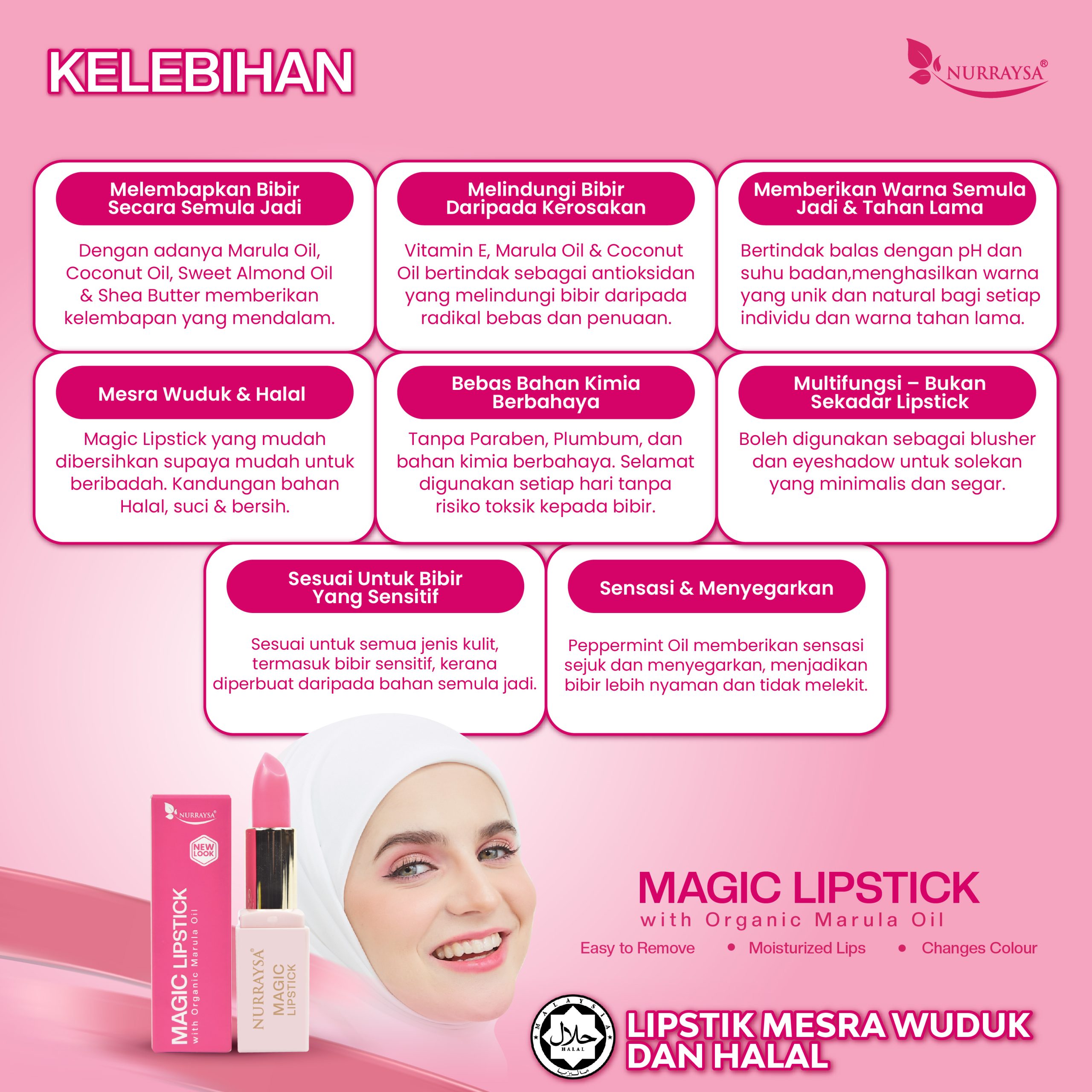 - Magic Lipstick With Organic Marula Oil dapat mengelakkan bibir menjadi hitam.
