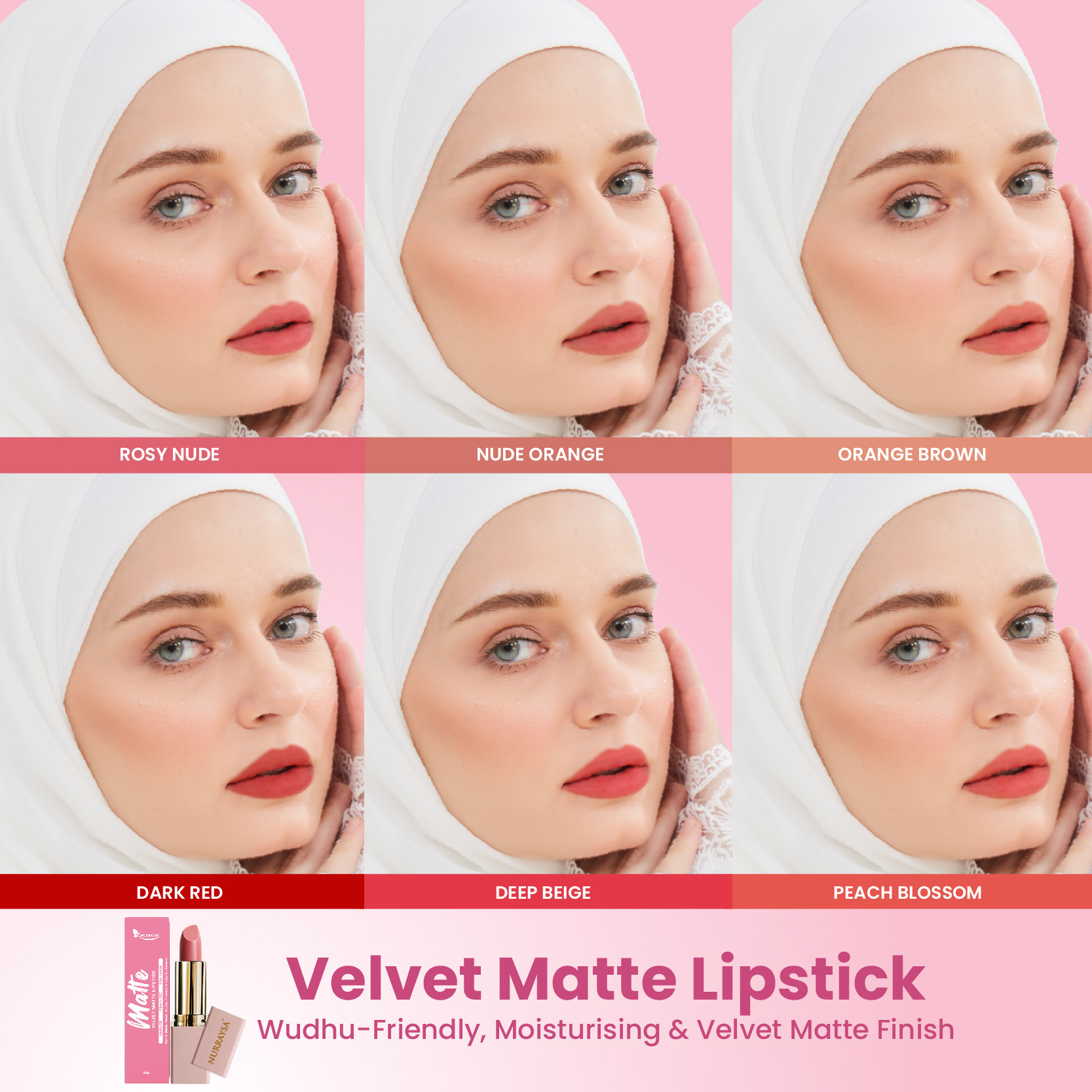 Kod Warna : Rosy Nude , Nude Orange , Orange Brown , Dark Red , Deep Beige , Peach Blossom