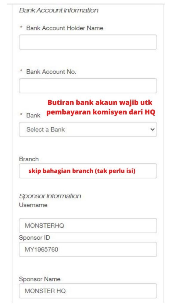 *Team Leader akan berikan kepada anda sebaik sahaja pendaftaran telah disahkan.