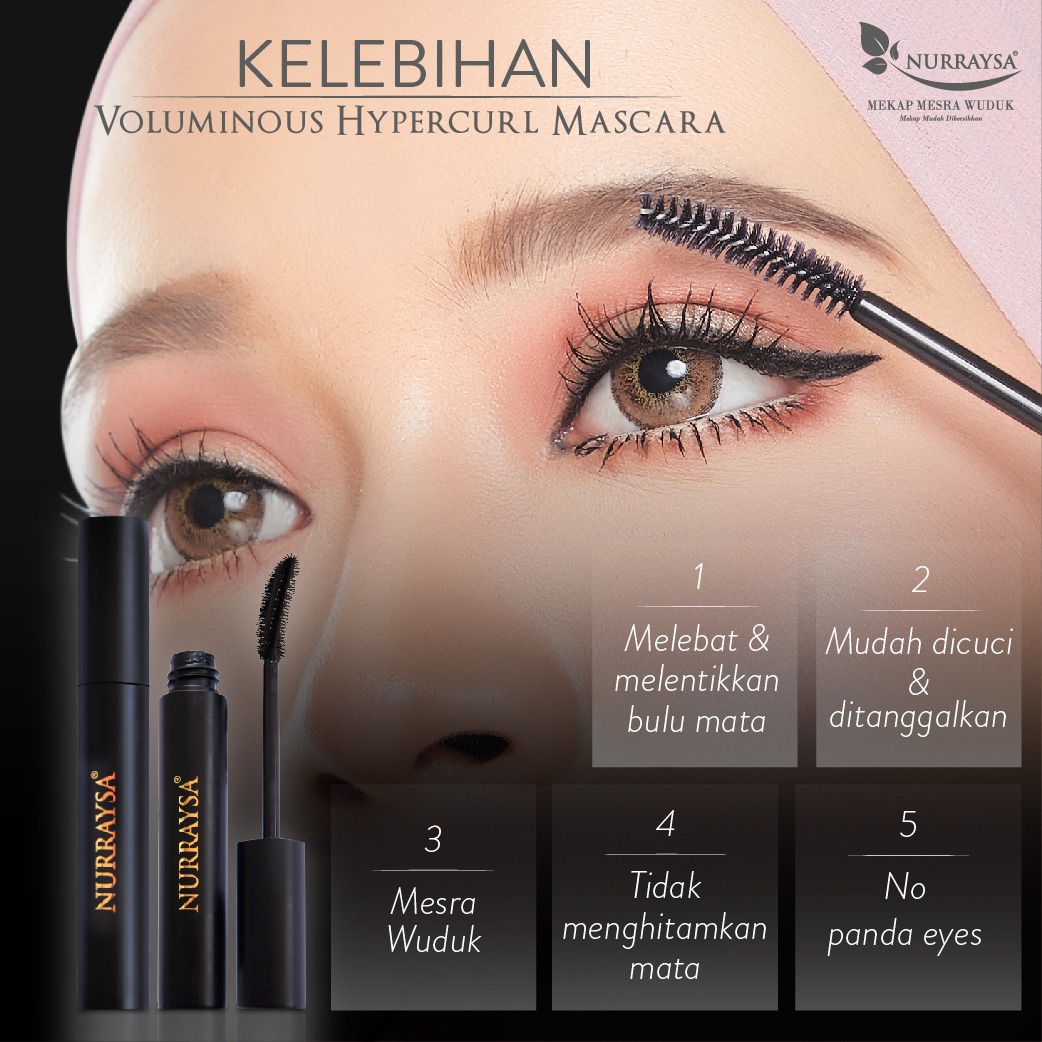 Voluminous Hypercurl Mascara Nurraysa akan memastikan bahagian mata anda nampak LEBIH MENARIK dan LEBIH LENTIK.